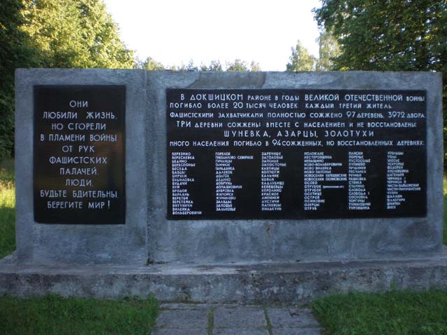Возвращаясь с Браславских озер, мы остановились около какого-то ахитектурного комплекса. Как оказалось, это была спаленая немцами во время второй мировой деревушка Шуневка.
