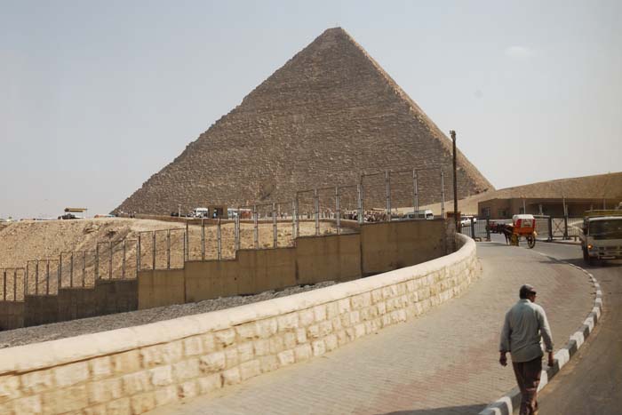 Ещё плутая по улицам Каира, в окошке автобуса мы видели, как на окраине города в дымке виднелись вершины пирамид. Необычайное зрелище - как будто две эпохи соприкасаются друг с другом: панельные дома и древние пирамиды!