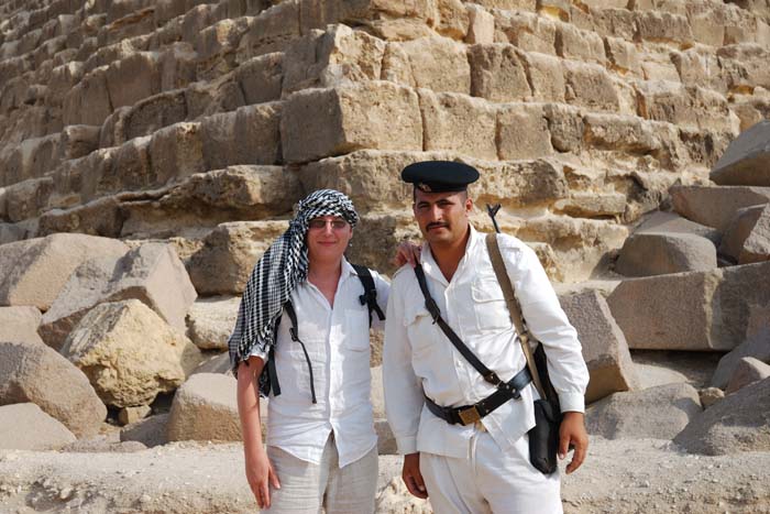 Подойдя поближе к пирамиде, мы увидели, как к нам с криками, а так же с пистолетом и автоматом Калашникова (!) подбегает местная полиция и выхватывает фотоаппарат (!). Как оказалось, он просто хотел нас сфотографировать :)