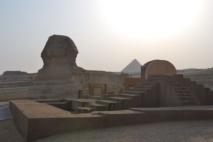 Для того, что бы поближе рассмотреть Большого Сфинкса, мы проходим через пропилеи Хефрена, где была проведена мумификация фараона Хефрена: