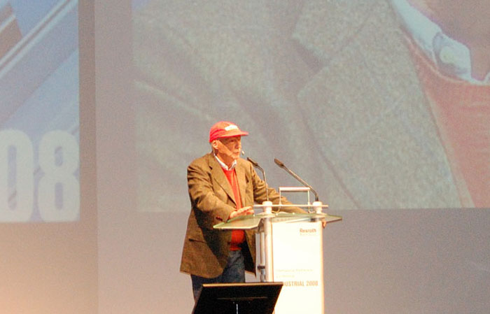 В конце семинара по промышленной гидравлике Bosch Rexroth приехал прямо в конференц-зал на своей Ferrari трёхкратный чемпион мира Формулы-1 Niki Lauda.