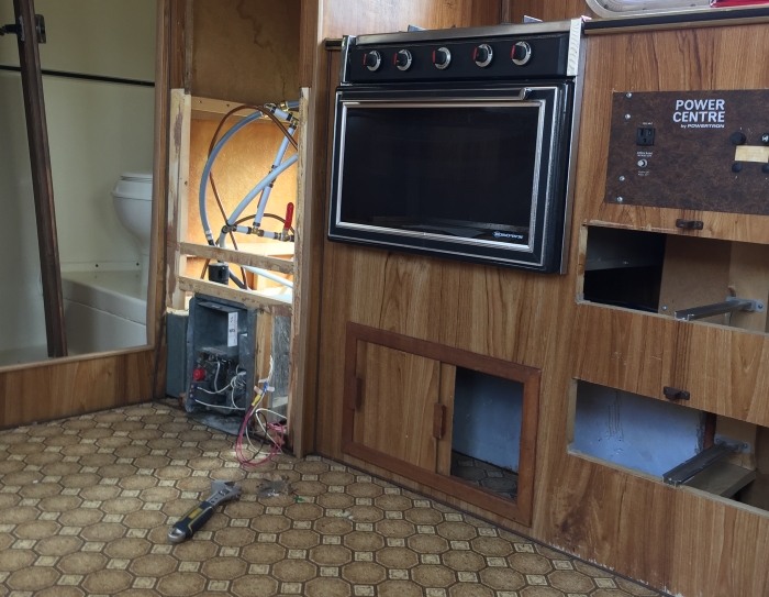 Чтобы достать отопитель, пришлось снять переднюю панель шкафчика: