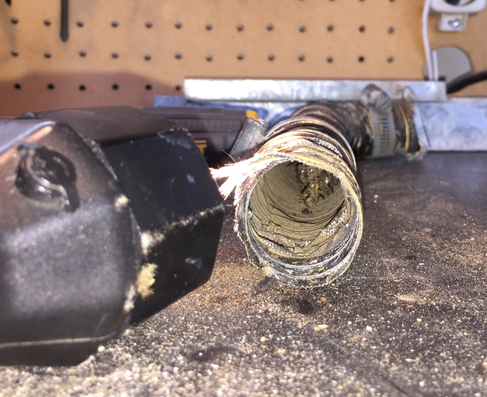 Сняв трубку подачи воздуха, я увидел, что она реально была почти полностью забита, и вообще не понятно как отопитель мог работать:
