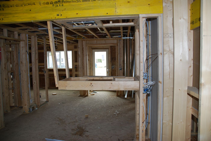 Первый этаж. справа будет камин, слева в дальнем углу - кухня:
