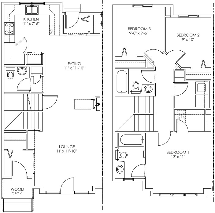 В качестве первого нашего "стартового" дома мы выбрали "дуплекс" - это два полноценных дома но с одной общей стенкой. Одна половинка наша. На рисунке сверху застройщик живописно его нарисовал. А вот это планы первого и второго этажей: