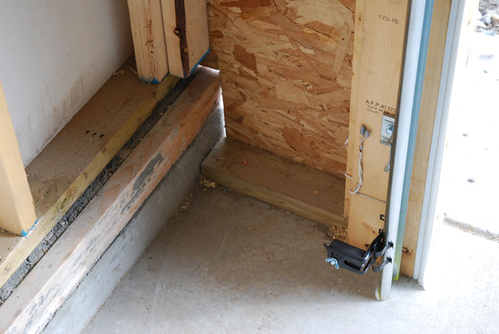 Во-вторых, застройщик в верхнюю часть бордюра залил брусок, к которому крепил стены гаража: