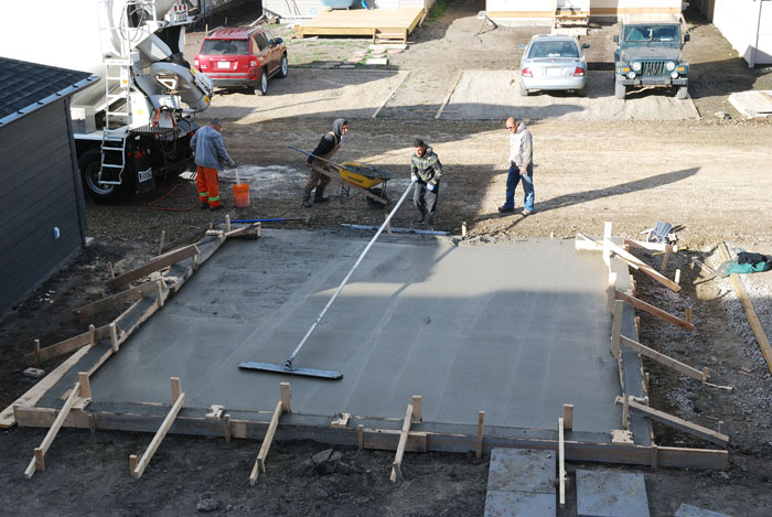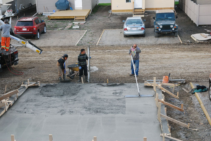 По объявлениям на kijiji определил, что на площадку 20'х20' стандартная цена заливки $3500. По срокам - 2 дня (1-й день установка опалубки, 2-й день заливка фундамента).