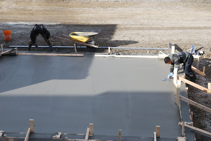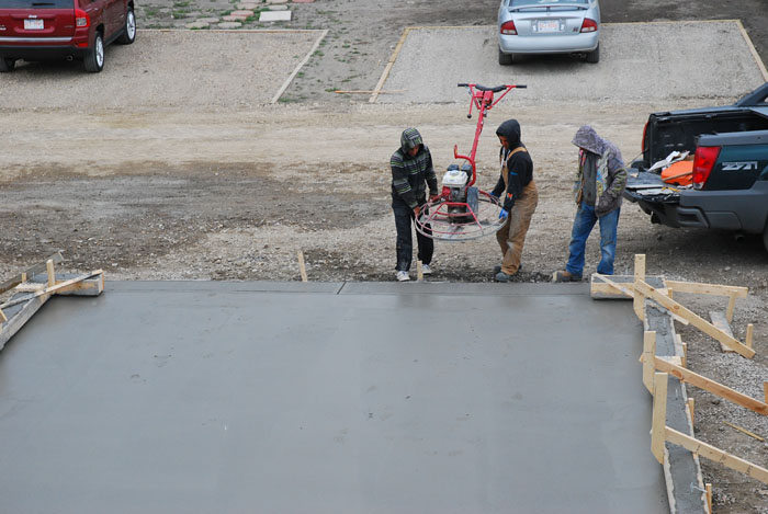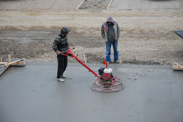 Потом отъехали на обед и через час (!) уже ходили по застывшему бетону!