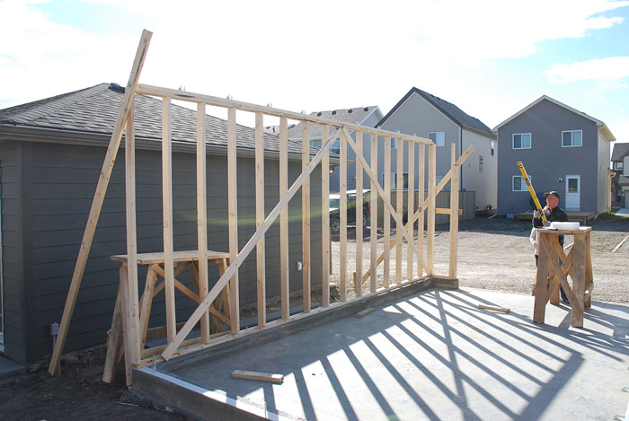 В этот день мы установили первую стену. Я начал нервничать т.к. вот только сейчас прочувтсвовал, что гараж получается выше чем я представлял...