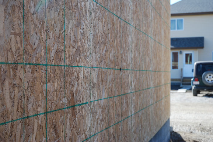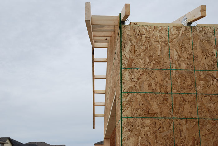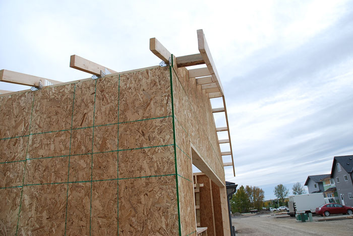 ДСП имеет нанесённую разметку, поэтому, если собирать гараж строго по инструкции, нет необходимости вымерять куда забить гвоздь, чтобы не промазать мимо бруса. Бей по линии!
