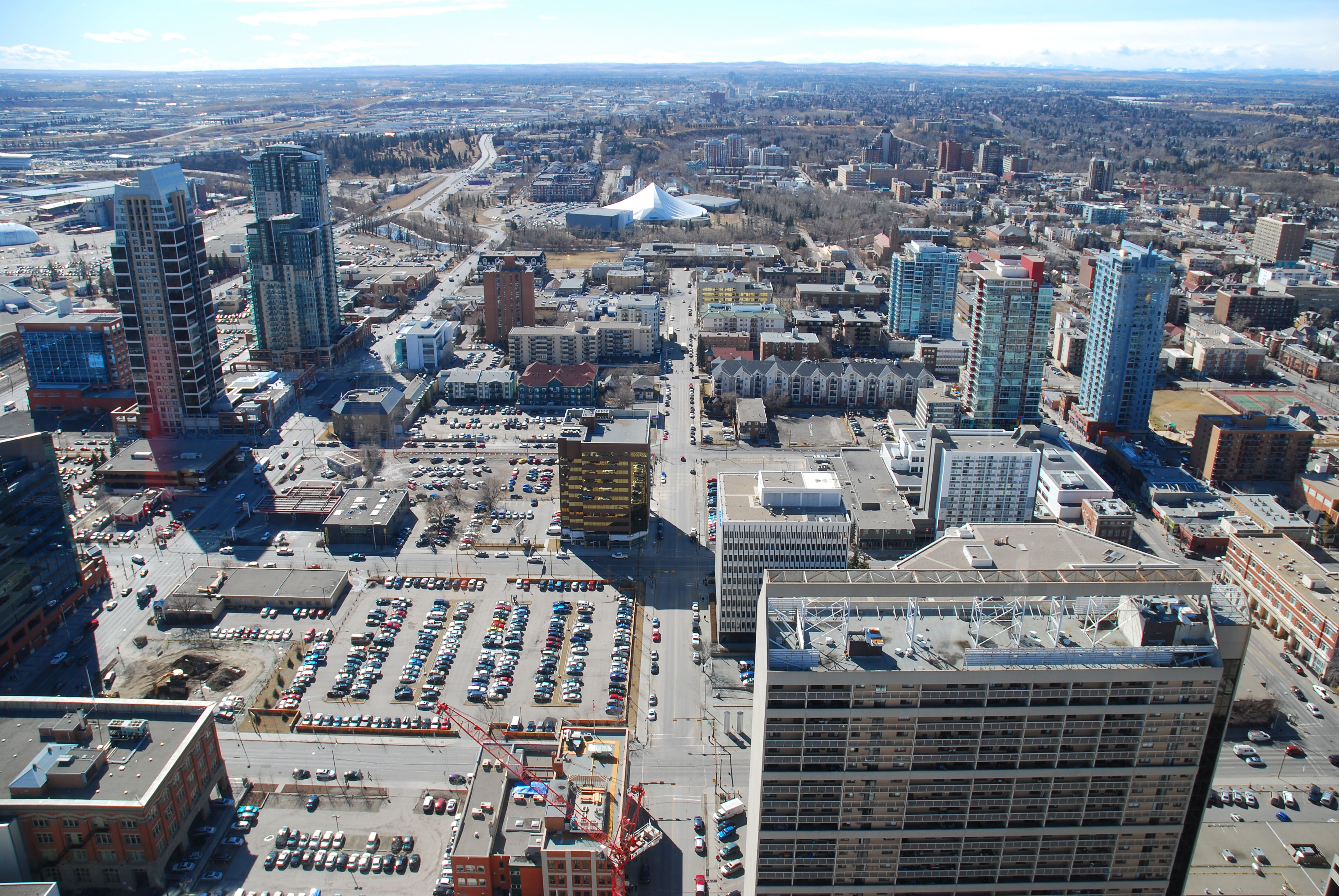 Самый козырный вид (для меня) - это запад, т.к. открывается панорама на Скалистые горы. Внизу фото панорамы вида на запад, склеенные фотошопом из 5 вертикальных фотографий: