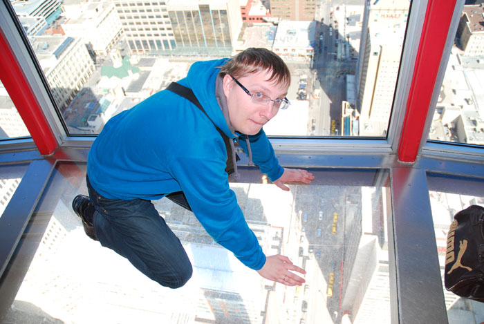 Не то, что бы я не доверял канадским строителям... Просто стекло показалось каким-то тонковатым. Висеть в воздухе как-то стрёмно: