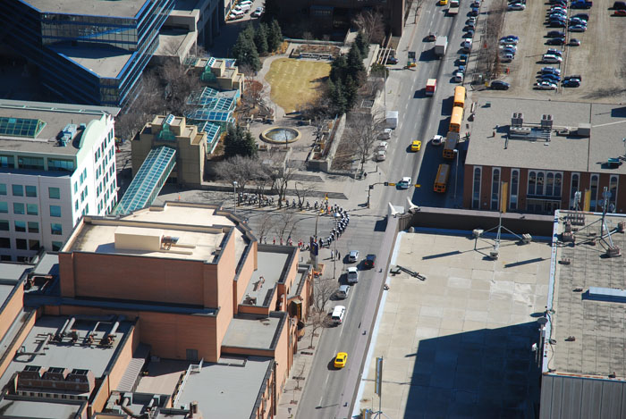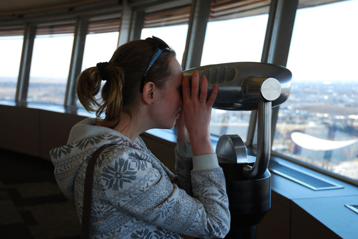 Ну вот таки добрались мы до местной достопримечательности - "Calgary Tower" = "Калгарийская Башня" чтобы рассмотреть этот город с высоты птичкиного полёта. Стоимость билета на входе: $16 - дорого, но зато билет действует весь день, можешь уходить/приходить сколько хочешь.