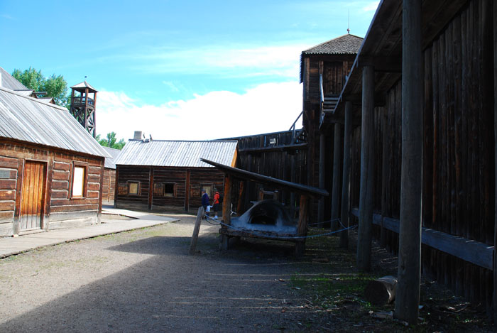 Пройдя от конечной остановки трамвая буквально метров сто через лесок перед нами открылся Форт. Он представляет собой закрытый большим забором со всех сторон комплекс сооружений. Форт, кстати - самая первая часть музея, которая открылась в 1974 году для посетителей. Он относится к "Эпохе торговли мехом" (1795-1859), был реконструирован по схемам британского лейтенанта Мервина Вавасора, который посетил форт в середине 1840-х годов.