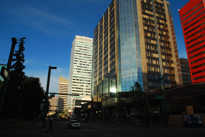 Предлагаем вам короткую виртуальную прогулку по даунтауну столицы Альберты! Особо комментировать не буду, просто фотографировал небоскрёбы в лучах заката...