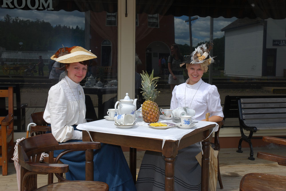 Дамы пьют чай для создания атмосферы начала прошлого века: