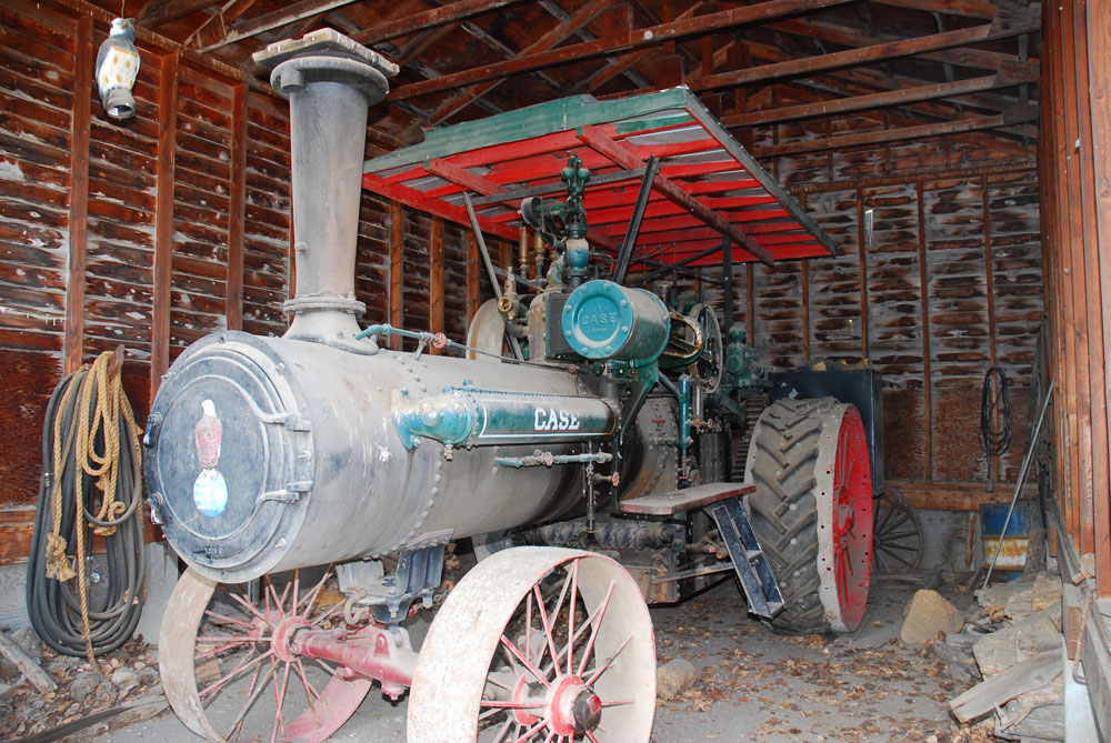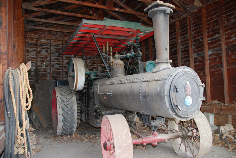 В одном из сараев мы нашли настоящий трактор, работающий на пару!