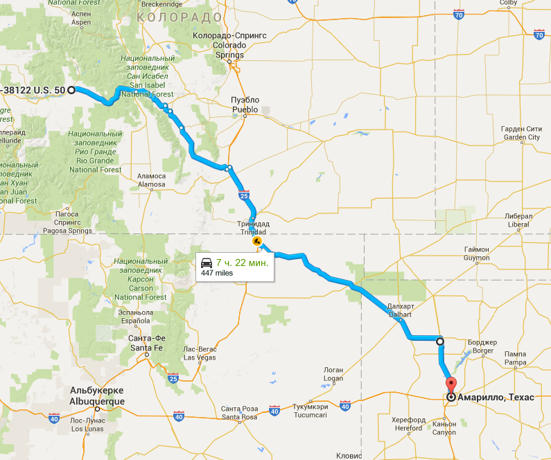 Далее мы должны были проехать горный хребет в Колорадо, немножко зацепить штат Нью-Мексико и к вечеру добраться до Техаса: