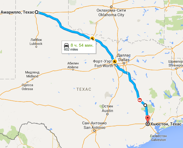 В техасе дорогие отели. Не понятно почему, но даже более-менее средненький отель стоил дороже всех, которые были на нашем пути. Мы переночевать остановились в городке Амарилло, заодно сходили в местный итальянский ресторанчик, где очень вкусно и недорого покушали (в Техасе еда недорогая а порции очень большие):