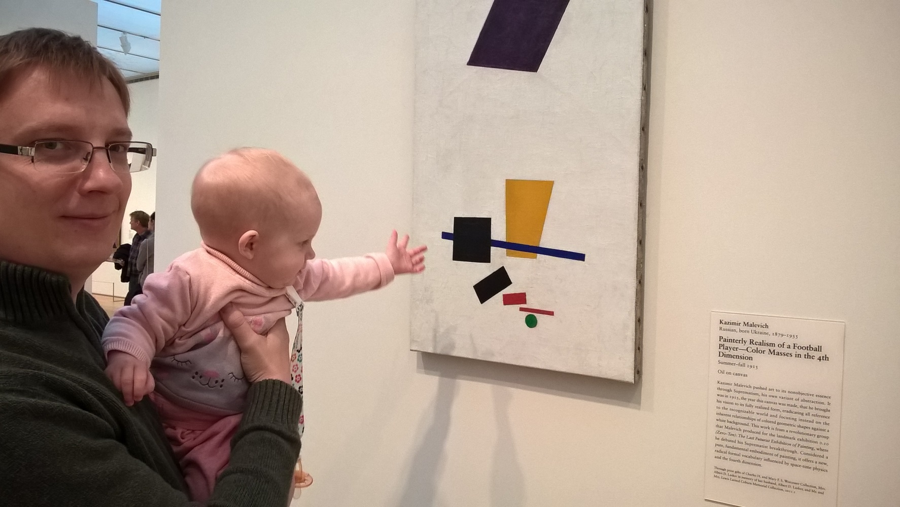Наша малышка даже поиграла в футбол с роботом (он был как раз с её рост и так же прикольно ходил), причём ей так понравилось, что её еле оттянули от робота. Она была очень недовольна и это услышали на всех трёх уровнях музея.