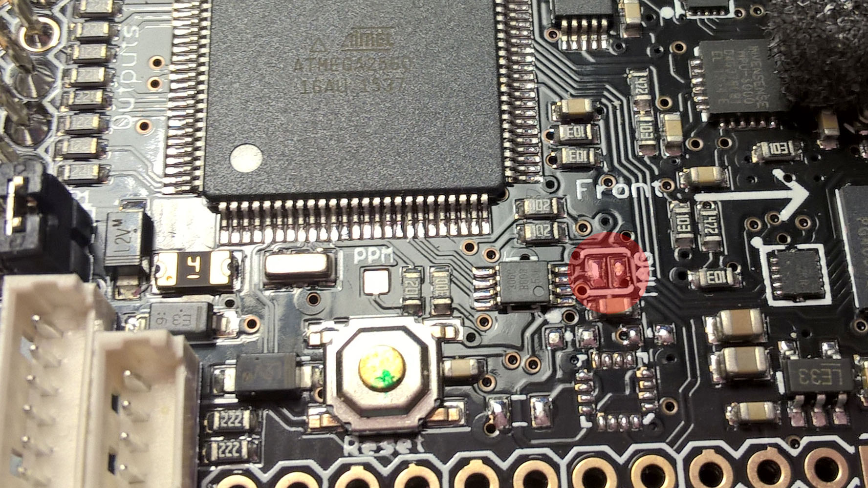 Как видите, эти 2 контакта у меня и не были соеденены. Как потом я вычитал, в связи с отсутствием компаса на версии 2.6, контакты на этом контроллере разорваны по умолчанию. Вот теперь резонный вопрос: какого черта без подсоединения внешнего компаса плата правильно распознаёт свою ориентацию в пространстве? Ведь такое поведение получается свойственно для предыдущей версии контроллера 2.5. Неужели китайцы подсунули мне APM 2.5? Почему же тогда Mission Planner определяет плату как 2.6? Разбираюсь...
