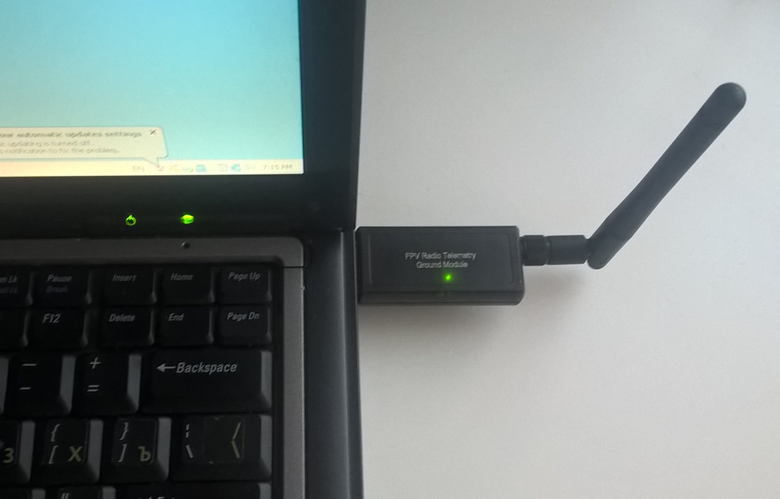 Так вот, ничего сложного в подключении не было: воткнул наземный модуль в USB порт, Vista легко определила и установила драйвер для наземного модуля (сел на COM6). После этого подключил аккумулятор и приёмник телеметрии к к APM, и оба модуля быстро нашли друг друга: